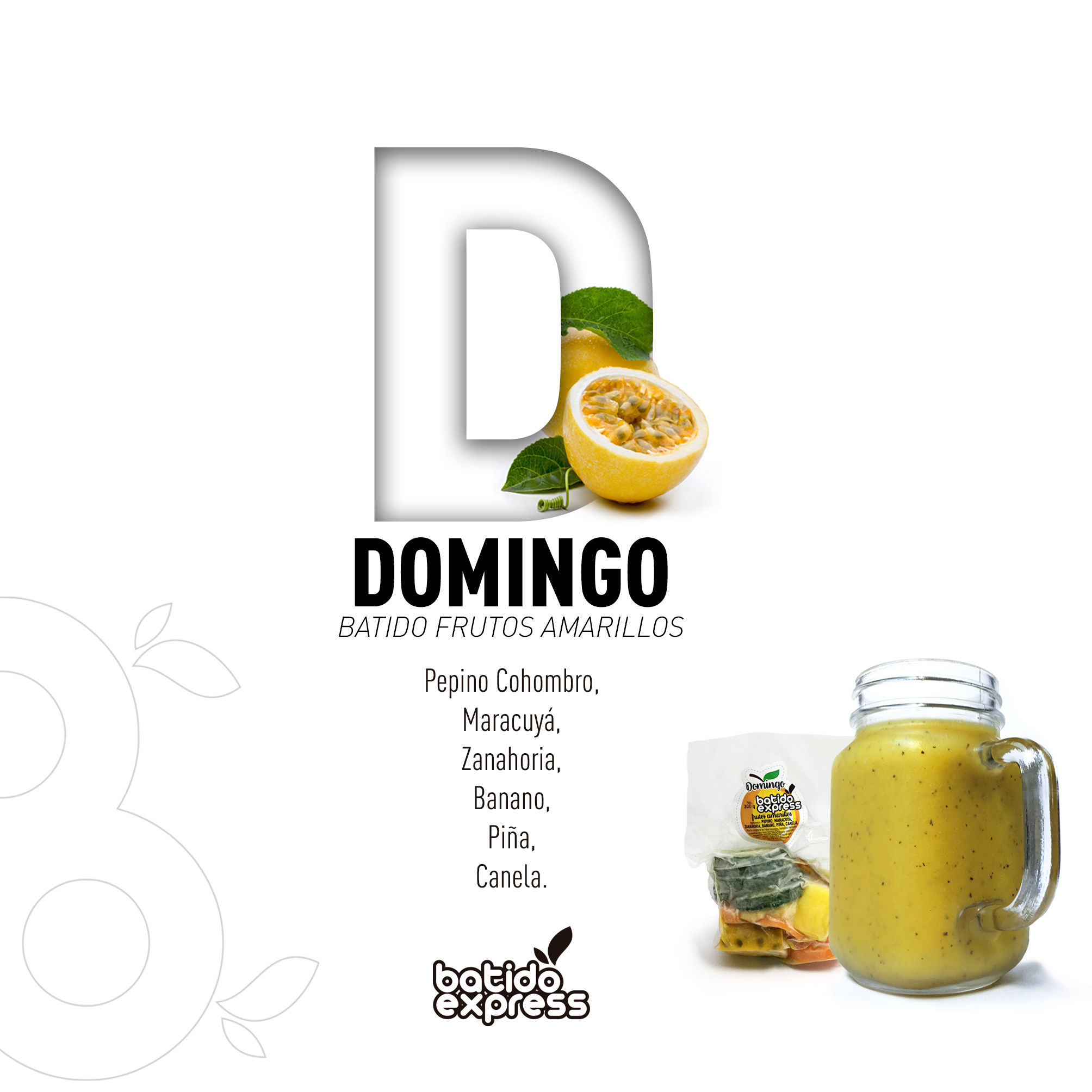 domingo: pepino cohombro, maracuya, zanahoria, banano, piña, canela.