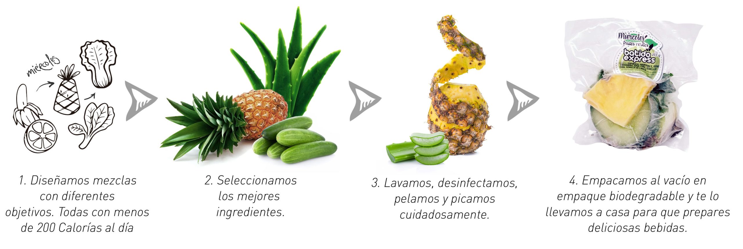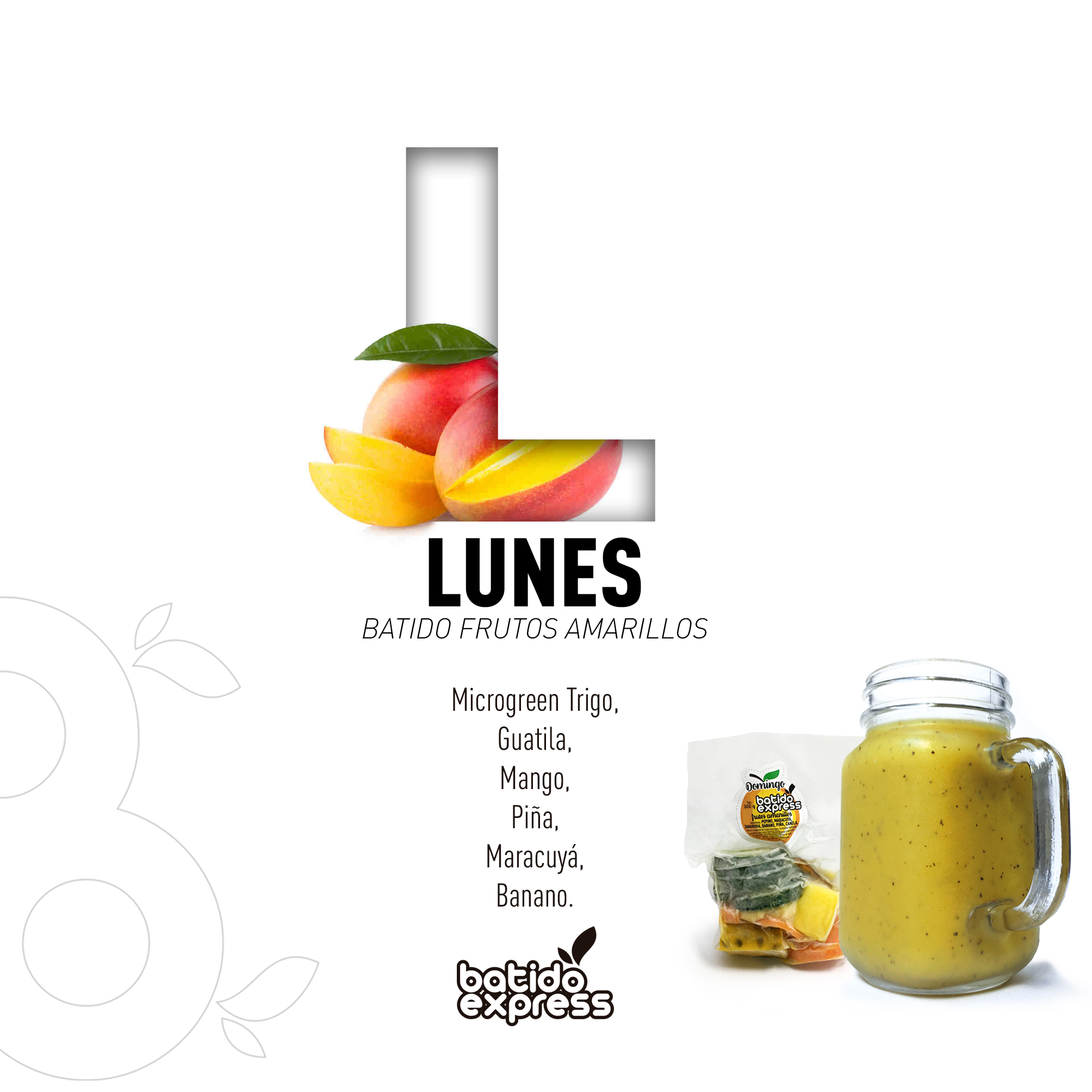 Lunes: piña, mango, guatila, maracuyá, banano, microgreens trigo;