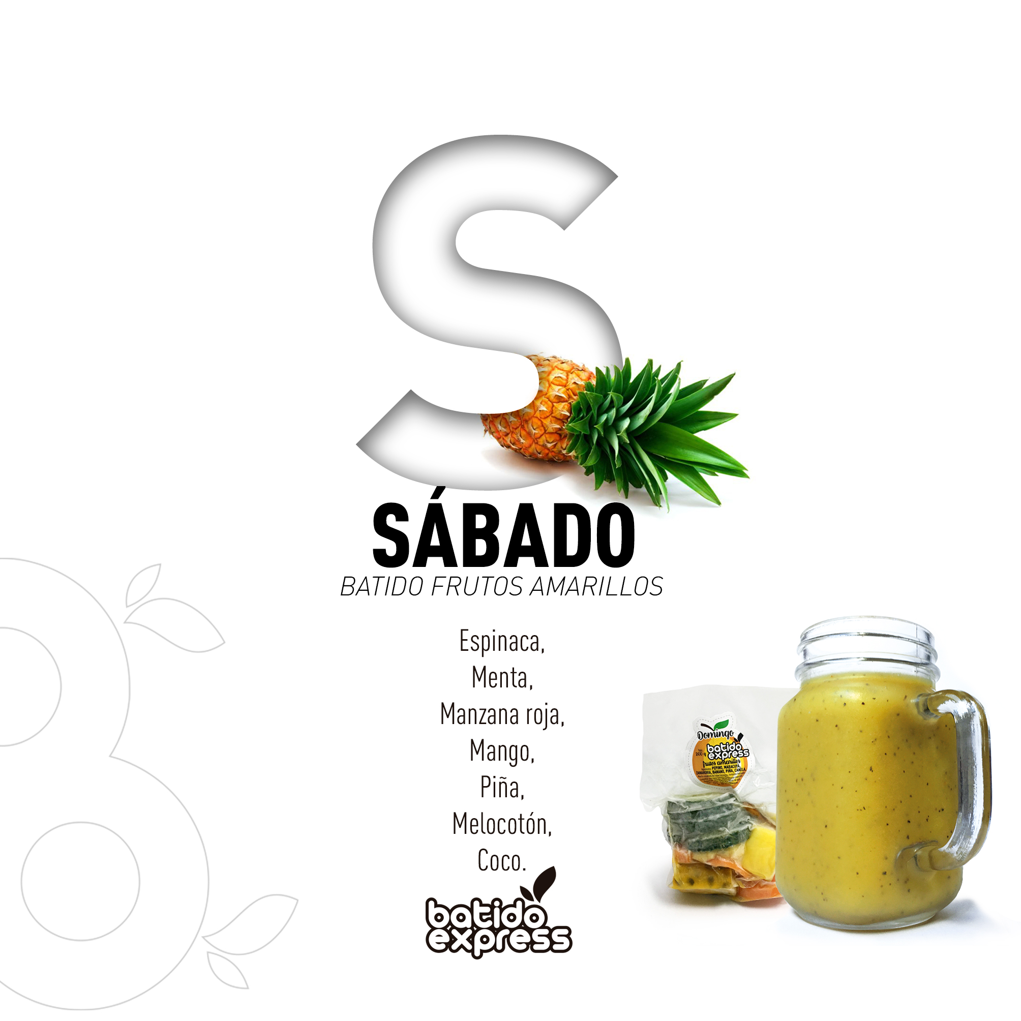 sábado: espinaca, piña, mango, manzana roja, durazno melocotón, espinaca, menta;