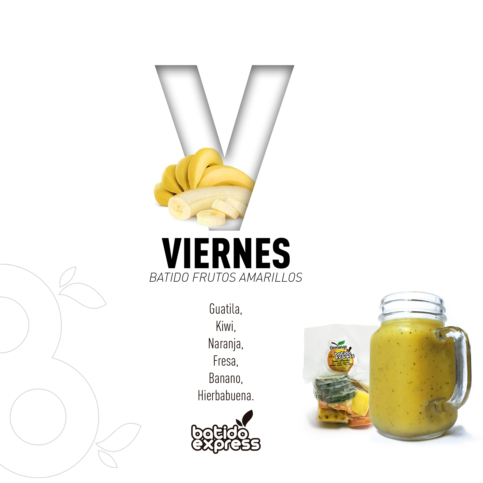 viernes: naranja, kiwi, fresa, banano, guatila, hierbabuena;