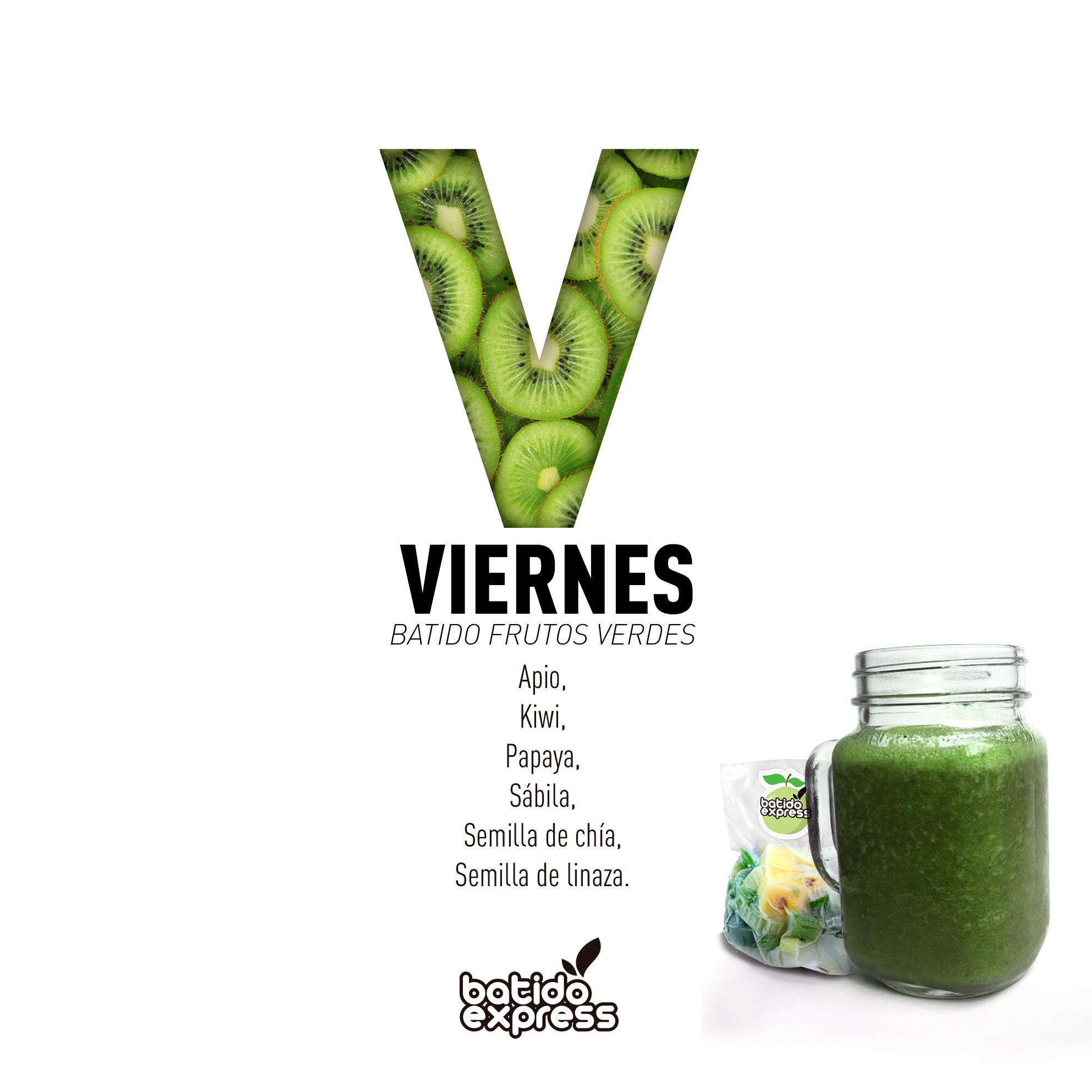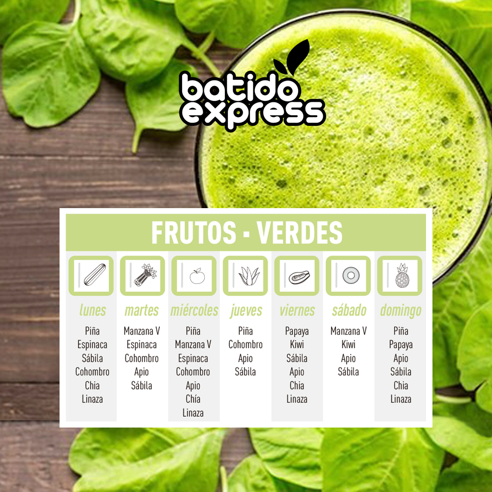 viernes:papaya, apio, kiwi, sábila, chía, linaza;