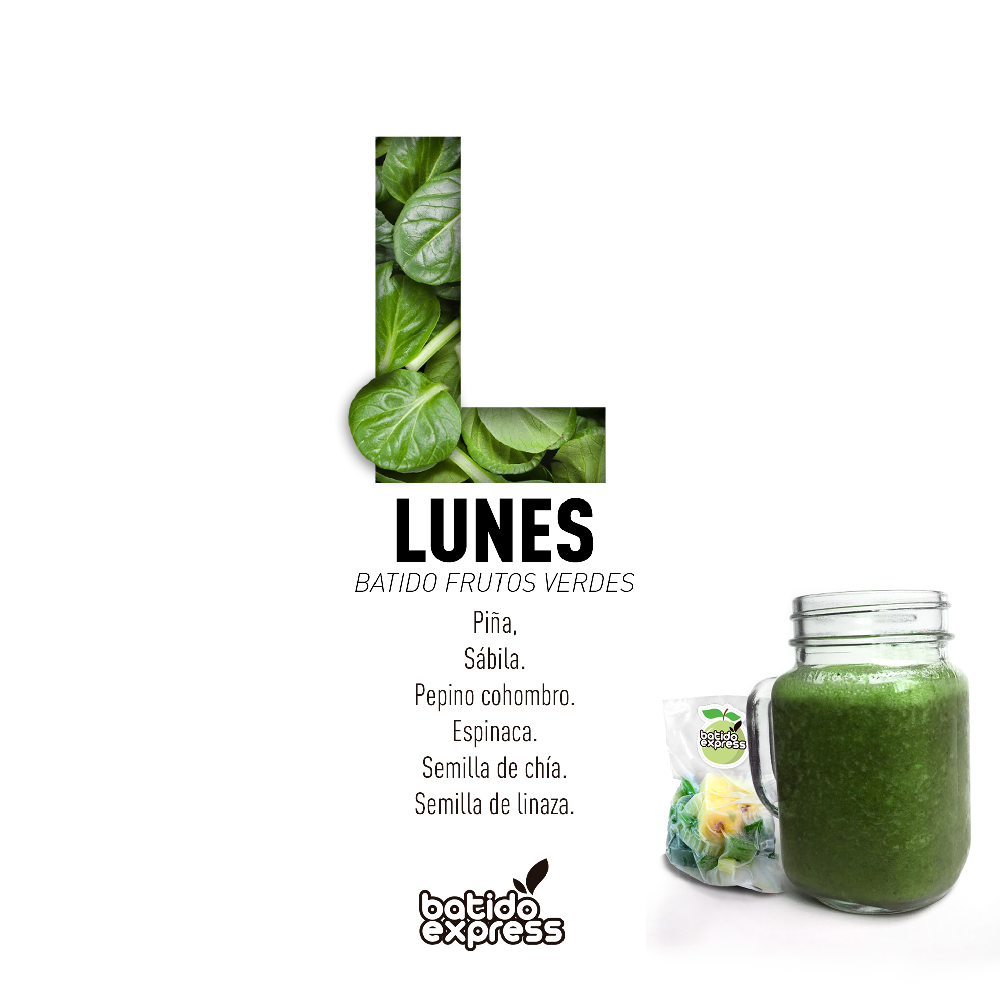 Lunes: piña, sábila, pepino cohombro, espinaca, chía, linaza;