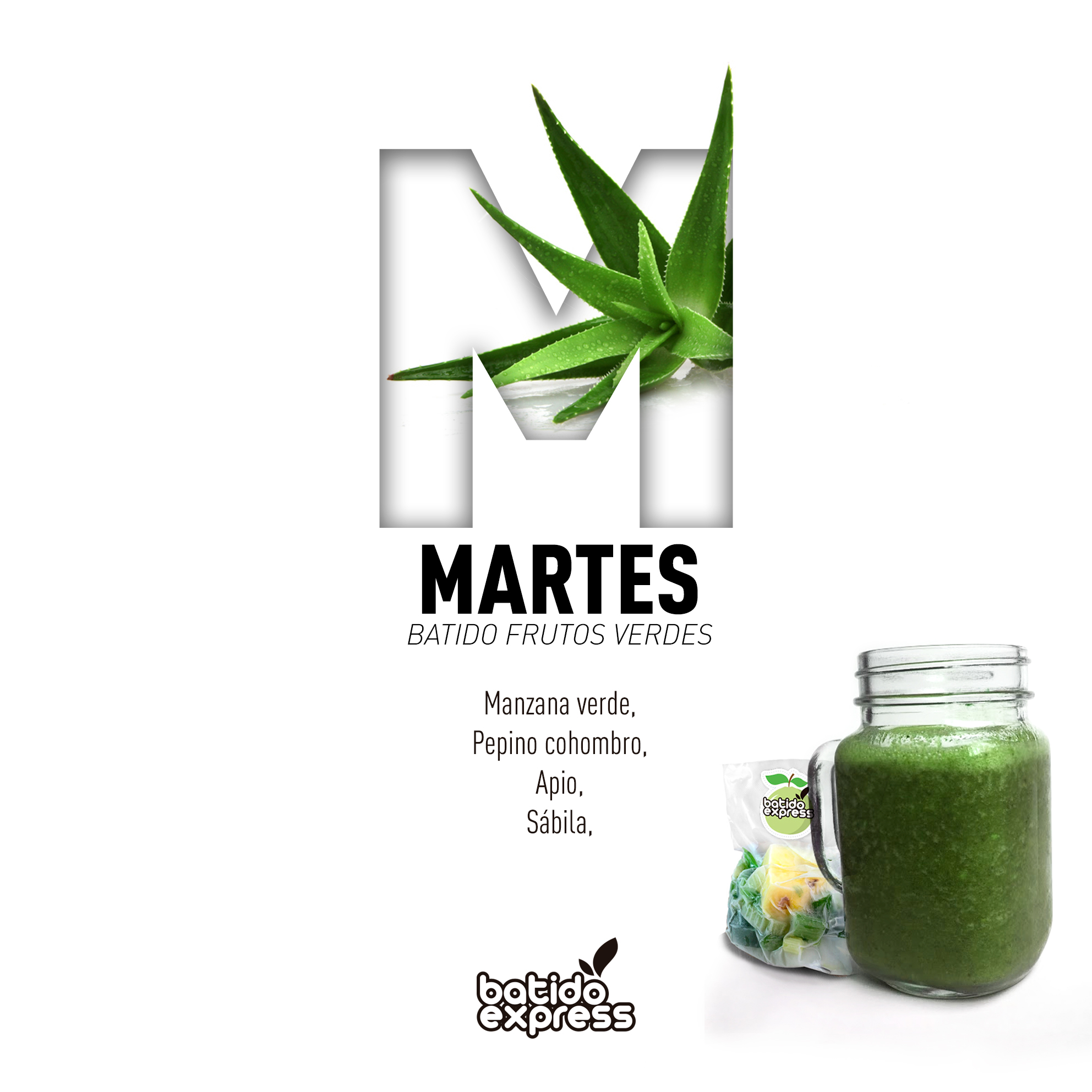 martes: manzana verde, pepino cohombro, apio, sábila, espinaca;
